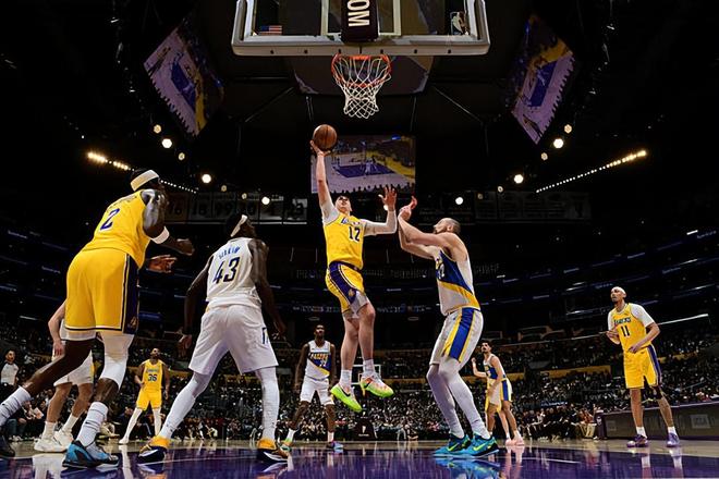 本場比賽中,湖人的替補側(cè)翼新星杰克-拉拉維亞(Jake LaRavia)的表現(xiàn)并不能算是非常理想。拉拉維亞全場出場15分53秒,投籃7中3,三分線外2中0,罰球2中2,得到了8分2籃板的數(shù)據(jù),還有1次失誤和3次犯規(guī),正負(fù)值為+13。拉拉維亞在進(jìn)攻端還是沒有找到自己的外線投籃感覺,進(jìn)攻效率依然不太理想,得分能力依然令人有些擔(dān)心。拉拉維亞在其他方面的表現(xiàn)也不能算是特別突出,即使他在防守端非常積極,但是他的個人防守能力,他的防守意識和防守經(jīng)驗都不是頂級水平,他在籃板保護方面的表現(xiàn)同樣不太出彩。至少在本場比賽中,拉拉維亞還是沒有展現(xiàn)出自己在各方面的實力,依然顯得有些平庸。