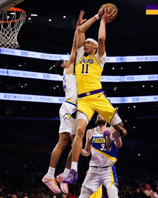 步行者隊在第四節(jié)開始后連追4分,肯納德中投得分,沃克三分命中,范德比爾特二次進攻得手,湖人隊牢牢保持領(lǐng)先。麥康奈爾拋投命中,里夫斯接管進攻連得9分,湖人隊以114-91領(lǐng)先23分。大比分差距讓剩余比賽沒了懸念,雙方都盡遣替補,最終湖人隊以128-117獲勝。