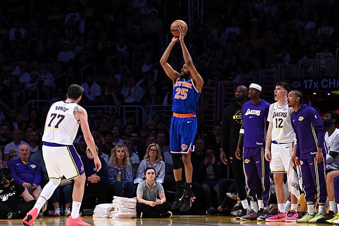 在此前的一場(chǎng)NBA常規(guī)賽中,主場(chǎng)作戰(zhàn)的洛杉磯湖人以110比97戰(zhàn)勝了紐約尼克斯。本場(chǎng)比賽后,拿下了兩連勝的湖人的戰(zhàn)績提升到了39勝25負(fù),排名也是反超了明尼蘇達(dá)森林狼提升到了西部第5位,與身前的丹佛掘金的勝場(chǎng)差為1場(chǎng),與身后的森林狼的勝場(chǎng)差為0場(chǎng);而在最近3場(chǎng)比賽中輸?shù)袅藘蓤?chǎng)的尼克斯的戰(zhàn)績則是下滑到了41勝24負(fù),繼續(xù)排名東部第3位,與身前的波士頓凱爾特人的勝場(chǎng)差為2.5場(chǎng),與身后的克利夫蘭騎士的勝場(chǎng)差為1.5場(chǎng)。