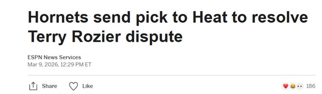 對(duì)聯(lián)盟和熱火而言,此事涉及多重問(wèn)題:羅齊爾2660萬(wàn)美元的年薪占據(jù)了球隊(duì)約17%的薪資空間,且按照當(dāng)初交易羅齊爾的條款,熱火仍需向黃蜂送出一枚2027年或2028年的首輪簽。