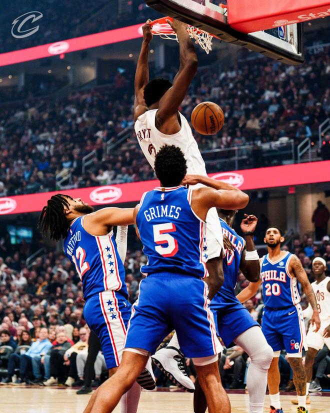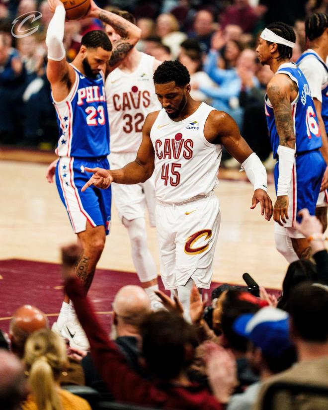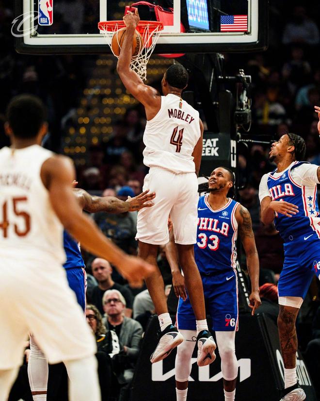 馬丁搶斷后上籃得分,埃利斯2罰全中,梅里爾與巴洛在籃下斗法,米切爾強(qiáng)攻禁區(qū)得分。莫布里搶斷后完成暴扣,費(fèi)城請(qǐng)求暫停。距離終場(chǎng)還剩3分50秒,騎士領(lǐng)先22分,兩隊(duì)都換上了板凳席末端的球員,比賽就此失去了懸念。雙方在場(chǎng)上練兵,時(shí)間逐漸走完。最終,騎士以115比101完勝76人,本賽季橫掃對(duì)手。