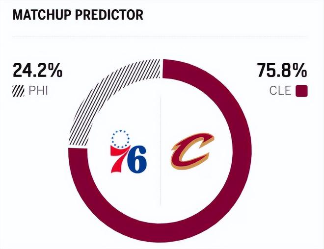 賽前,美媒ESPN對本場比賽進行了預(yù)測,76人勝率僅有24.2% ,騎士勝率則高達75.8% ,劣勢明顯。