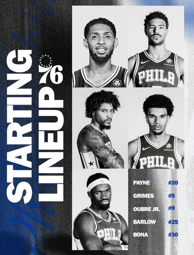 首發(fā)陣容方面,騎士隊這邊,阿倫和斯特魯斯缺陣,哈登繼續(xù)帶傷出戰(zhàn),教練阿特金森排出的最新首發(fā)五人組為:哈登、米切爾、梅里爾、迪恩-韋德、莫布利;76人隊這邊,恩比德、馬克西、VJ-埃奇庫姆缺陣,喬治被禁賽,首發(fā)陣容則為:佩恩、格蘭姆斯、烏布雷、巴洛、博納