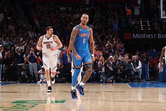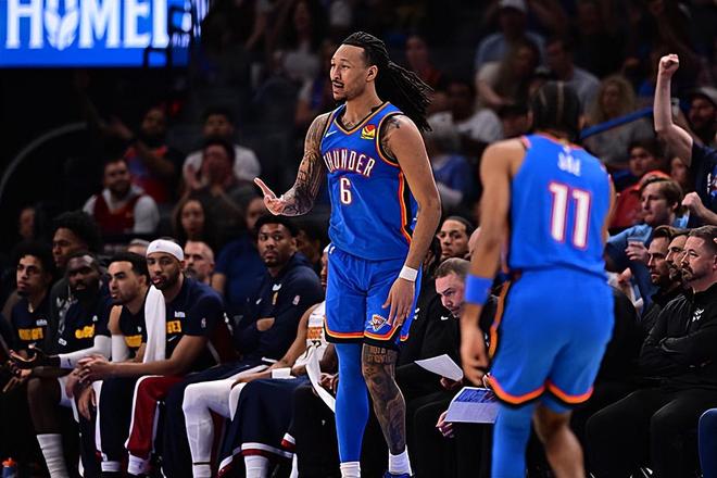 本場比賽中,雷霆的先發(fā)中鋒杰林-威廉姆斯(Jaylin Williams)的表現(xiàn)算得上是令人刮目相看。威廉姆斯全場出場39分37秒,投籃17中10,三分線外11中7,罰球4中2,得到了29分12籃板3助攻2蓋帽的兩雙數(shù)據(jù),還有1次失誤和4次犯規(guī),正負值為+4。值得一提的是,29分是威廉姆斯職業(yè)生涯的第二高得分,本場比賽也是他職業(yè)生涯表現(xiàn)最好的比賽之一了。威廉姆斯在進攻端不斷通過外線投籃完成得分,他的投射能力有了充分地體現(xiàn),他還具備一定的傳球能力和策應能力。到了防守端,威廉姆斯也具備一定的內(nèi)線防守能力和籃板保護能力。總體來看,面對著尼科拉-約基奇(Nikola Jokic),威廉姆斯能夠打出這樣的表現(xiàn),能夠在進攻端完爆對手,也是一件很不容易的事情,也能夠說明他的能力和狀態(tài)有多出色。
