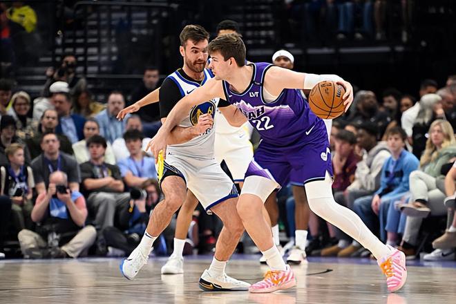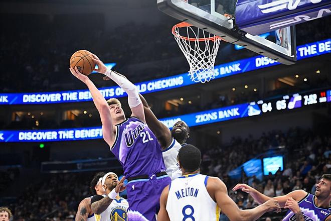 本場比賽中,爵士的先發(fā)中鋒凱爾-菲利波夫斯基(Kyle Filipowski)的表現(xiàn)還是相當(dāng)不錯的。菲利波夫斯基全場出場24分56秒,投籃12中6,三分線外3中1,罰球6中6,得到了19分15籃板5助攻2搶斷1蓋帽的數(shù)據(jù),其中還包括了4個前場籃板,還有4次失誤和1次犯規(guī),正負(fù)值為+1。菲利波夫斯基在進(jìn)攻端展現(xiàn)出了全面的得分能力,他在對手內(nèi)線制造了不小的威脅,他還具備一定的投射能力,他在傳球和策應(yīng)方面的表現(xiàn)也是值得肯定的,他在前場籃板爭搶方面同樣發(fā)揮出了自己的作用。菲利波夫斯基在防守端的表現(xiàn)同樣是相當(dāng)可圈可點的,同樣能夠起到很好的效果。菲利波夫斯基在防守端的表現(xiàn)其實也還是值得肯定的,也沒有出現(xiàn)什么問題??傮w來看,菲利波夫斯基在本場比賽中也是發(fā)揮出了自己全面的才能。如果他的出場時間能夠更多一些,他的表現(xiàn)和他的數(shù)據(jù)都能夠更上一層臺階。