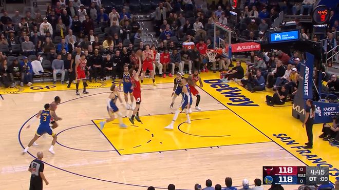 勇士換了多人防守,但沒有一個人能有效限制布澤利斯,三節(jié)結(jié)束,布澤利斯在油漆區(qū)9次出手全部命中,拿下24分。