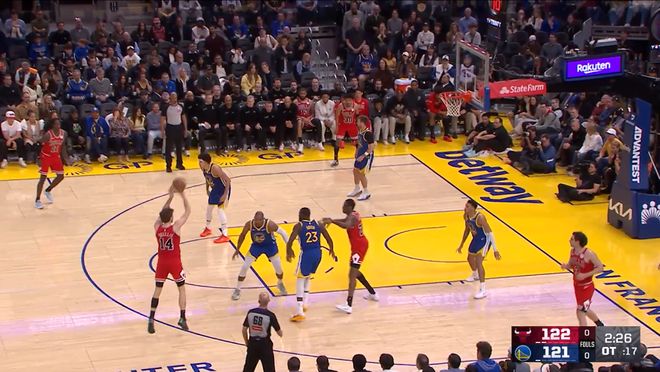 關(guān)鍵的第四節(jié),布澤利斯又單節(jié)拿下12分,其中剩下1分半鐘前,公牛還以107-115落后8分,隨后打了一波11-3將比賽拖進(jìn)加時,這波進(jìn)攻潮中,布澤利斯一記關(guān)鍵三分+兩記關(guān)鍵罰球。