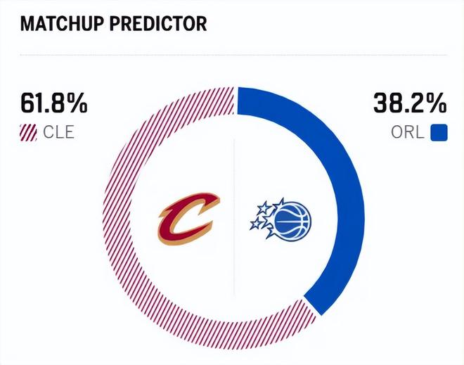 賽前,美媒ESPN對本場比賽進(jìn)行了預(yù)測,魔術(shù)勝率僅有38.2% ,騎士勝率則高達(dá)61.8% ,劣勢明顯。