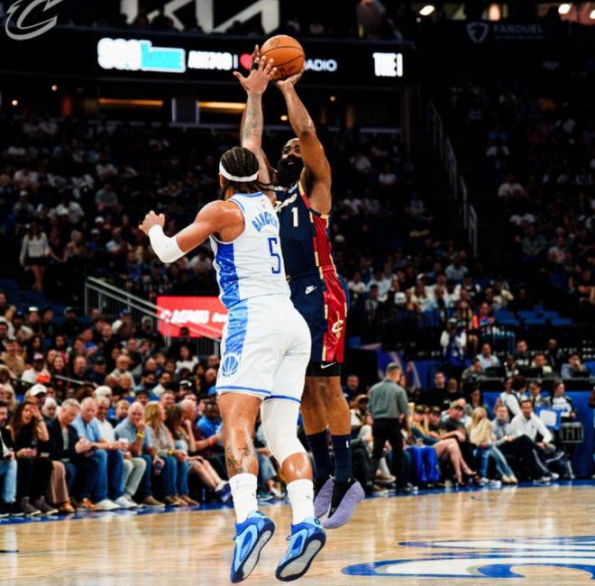 第四節(jié)決戰(zhàn),貝恩單打運(yùn)球漂移長兩分投進(jìn),15投11中已砍下30分,魔術(shù)領(lǐng)先到13分。埃利斯和哈登連中4記三分,席瓦爾也是接連三分回應(yīng),最終,騎士以128-122爆冷險(xiǎn)勝,豪取5連勝,成功復(fù)仇騎士。