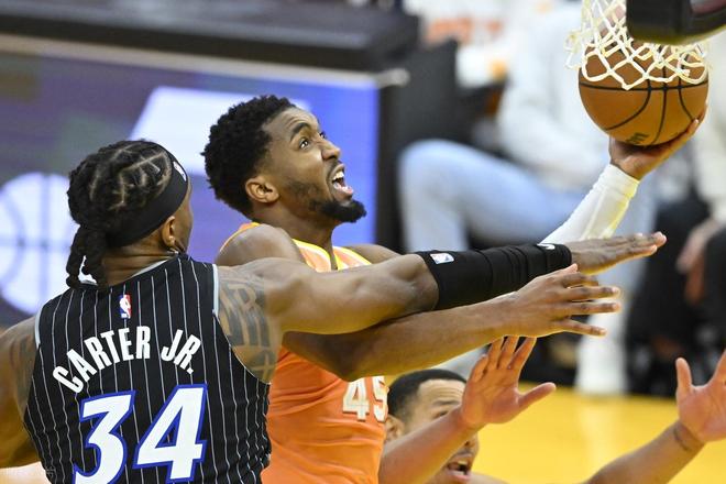 末節(jié)比賽,莫布里暴扣,貝恩自投自搶補(bǔ)籃拿2分,隨后罰球拿2分,魔術(shù)領(lǐng)先9分!托布罰球拿2分,貝恩高位撤步跳投拿2分,龐達(dá)補(bǔ)籃拿2分,魔術(shù)領(lǐng)先11分!米切爾命中3分止血,魔術(shù)連拿4分,埃利斯罰球二中一,梅里爾突破上籃拿2分,席爾瓦3分不中,小卡特補(bǔ)扣,莫布里造犯規(guī)二中一,分差來(lái)到10分!薩格斯回來(lái)命中3分,埃利斯罰球拿2分,席爾瓦跟進(jìn)拿2分,哈登罰球二中一,隨后上籃打進(jìn),分差來(lái)到10分!末節(jié)最后,兩隊(duì)開(kāi)啟神仙打架,埃利斯命中3分,席爾瓦3分也進(jìn),埃利斯3分再進(jìn),席爾瓦3分再中,回來(lái)哈登、米切爾連中2個(gè)3分,分差來(lái)到2分!貝恩命中3分,這一球一槌定音了吧?米切爾3分不中,莫布里補(bǔ)籃拿2分,隨后騎士犯規(guī),貝恩罰球拿2分!最終騎士122-128不敵魔術(shù),送后者5連勝!