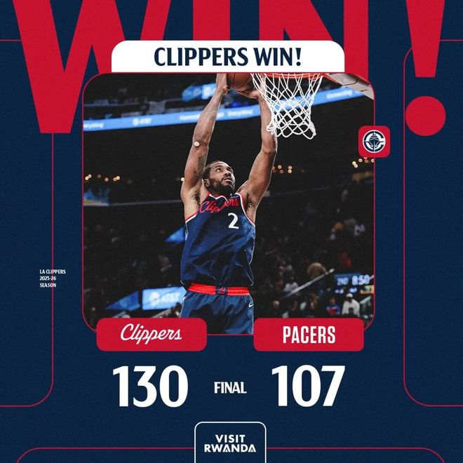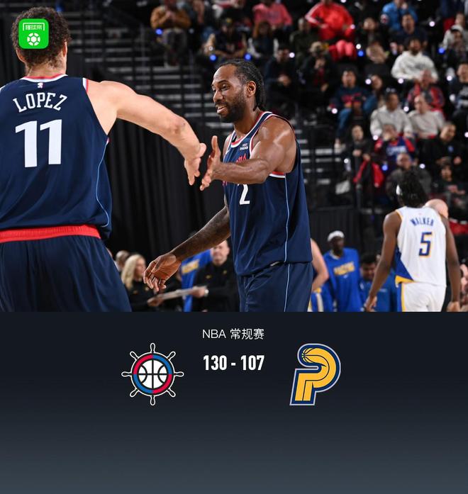 快船130-107輕取步行者,倫納德三節(jié)打卡29+8,馬圖林23分
